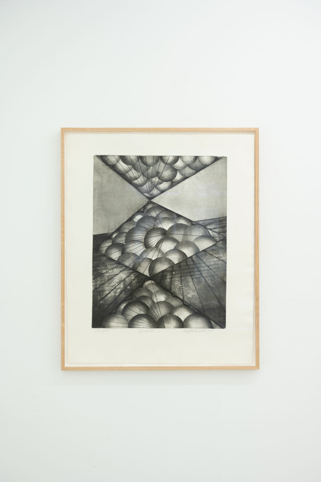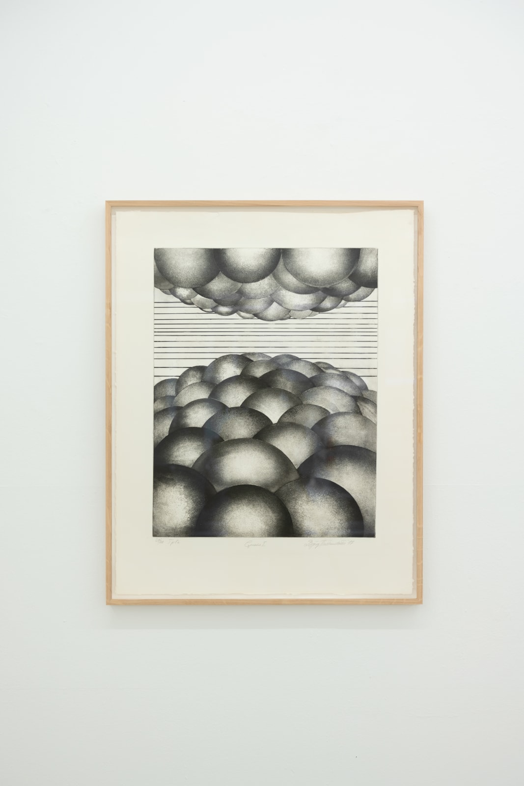 A more alien perspective is found in Björg Thorsteinsdóttir’s (1940 –2019) works from her Genesis series (1977). At first sight clear and austere, these graphics allude to strange geometries, other cosmic dimensions, impossible worlds, or the infinite small of electron microscope images. But countering the clarity of geometric lines and circles, there is also a tension, a dynamic, a scale both in duration and size that we cannot grasp, an uncanny hint of a possibly microcosmic, macrocosmic or inorganic liveliness far beyond our imagination and our human world.