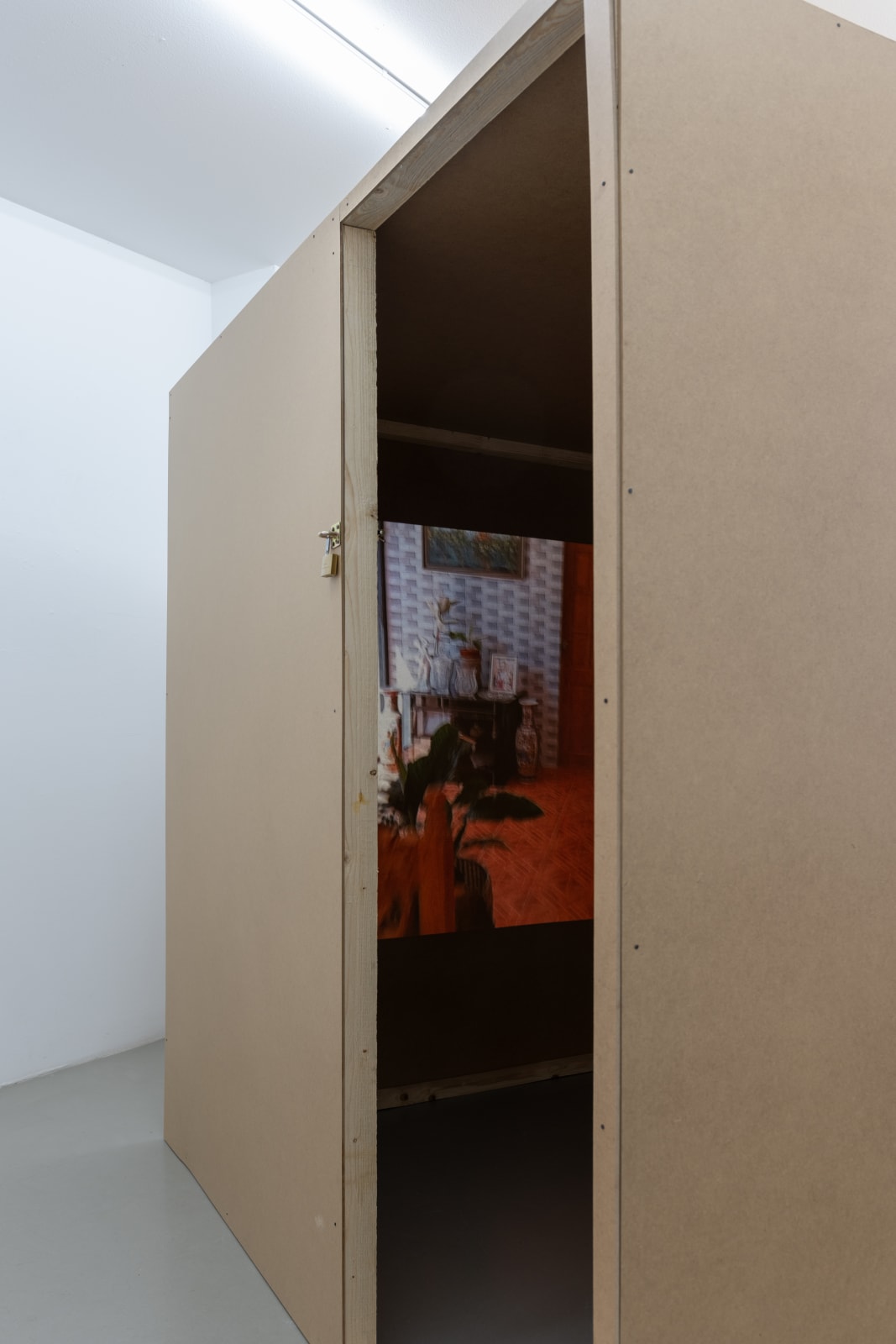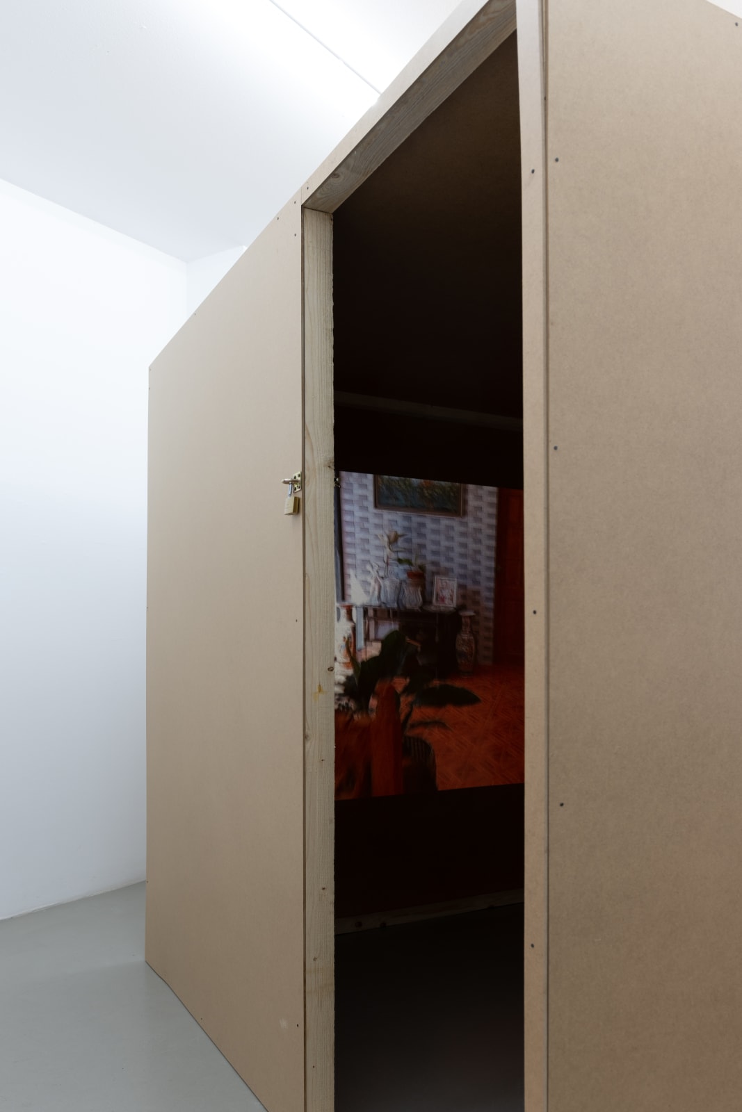 Melanie expands on this theme in the show’s installation piece. The installation is a replica of the tiny room her mother rents in Iceland, overlaid with a video of an extravagant mansion that her mother has been building in the Philippines over the last decade.
