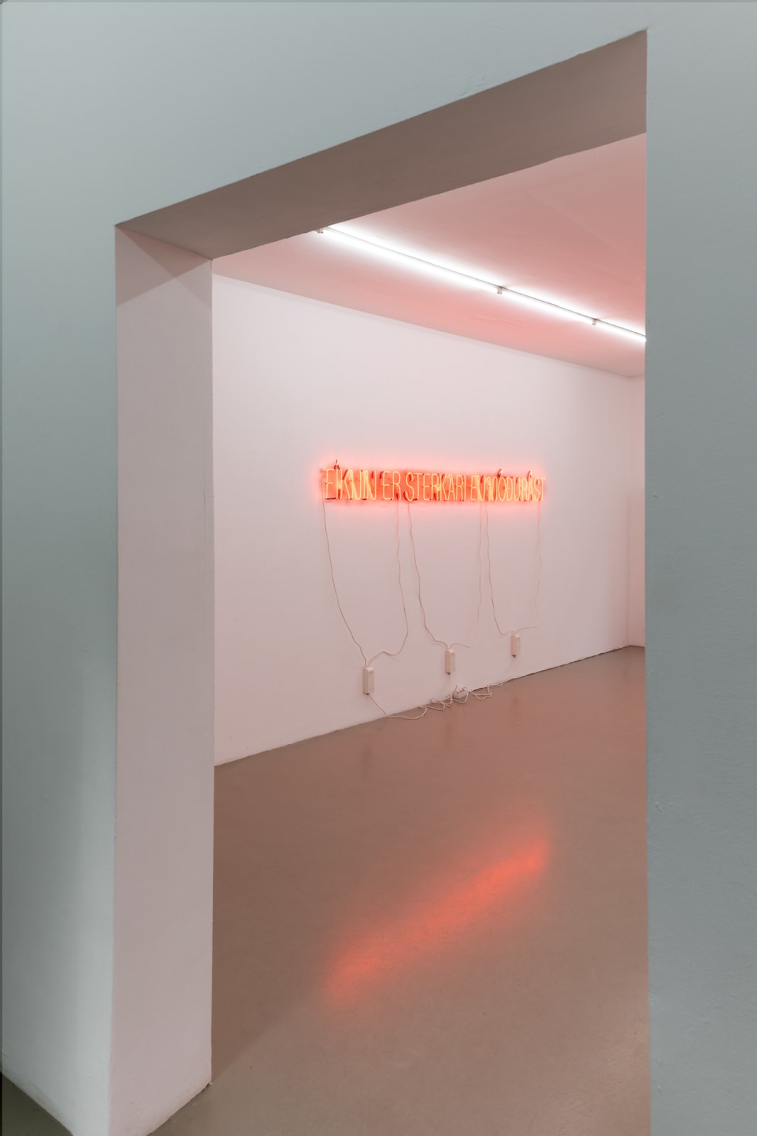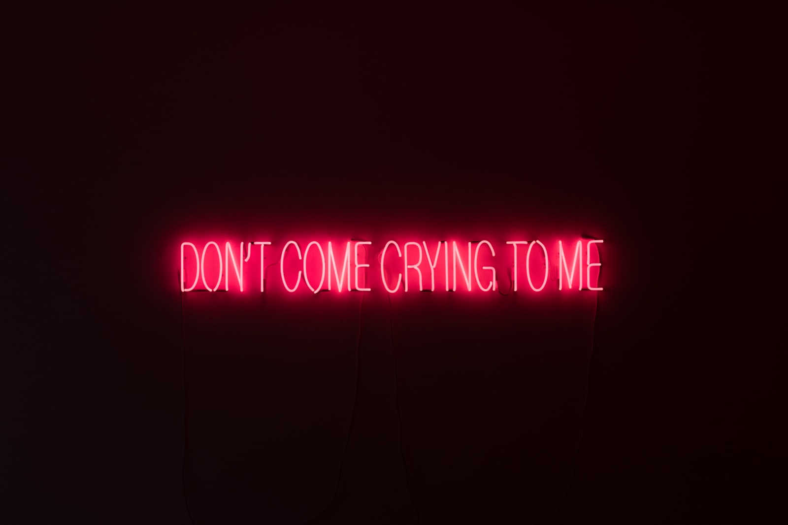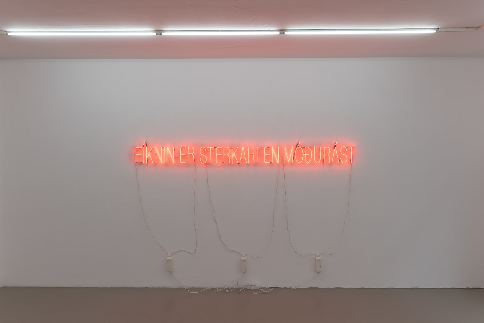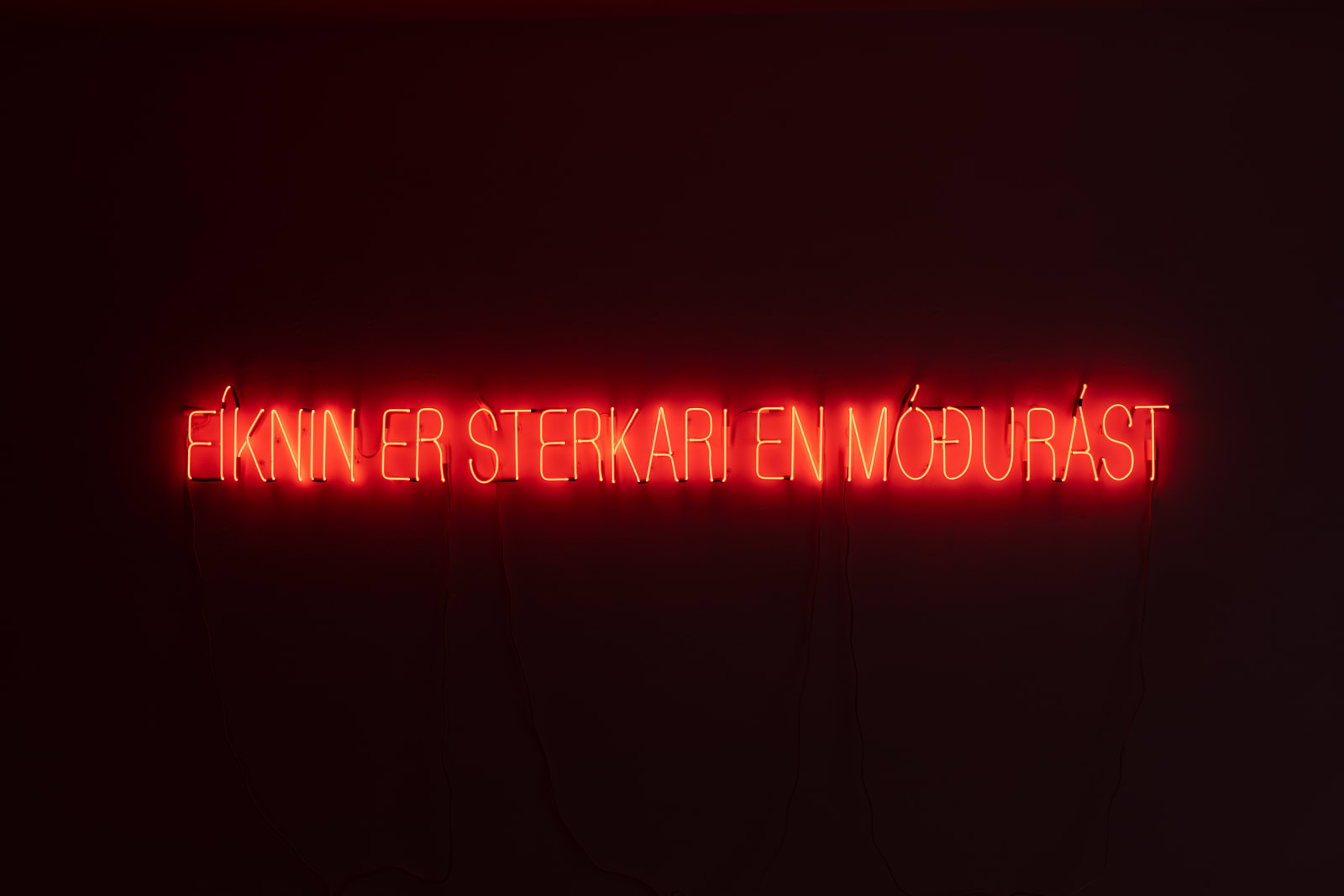 Melanie anchors the exhibition in a neon text piece spelling out the phrase “don’t come crying to me.” Drawing on autobiographical experience, she recalls how her mother uttered this phrase when they first discussed her then-new relationship with her partner. Across the gallery is another text, reading “addiction is greater than maternal love.” With characteristic irony, Melanie reflects on both the protective urge in maternal love and its limitations, which immigrant life often renders more complex: