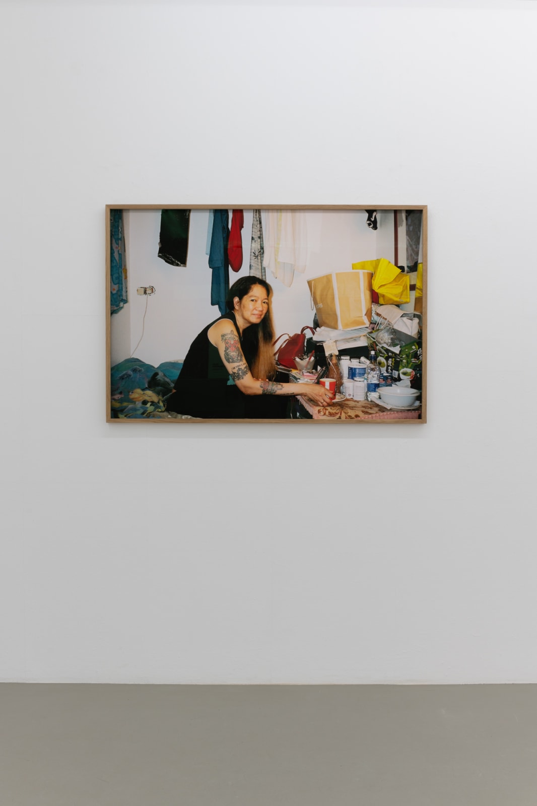 Moreover, her material and process-related choices make semiotic allusions that place her in intersectional dialogue with other artists grappling with identity, belonging, and placemaking, like British/Pakistani artist Shezad Dawood (who explores immigrant identity with neon scripts) and American/Chinese artist Wu Tsang (who uses citations to explore the ambiguity characterizing many immigrants’ sense of belonging). Similarly, Melanie’s room-based installations call to mind Swedish/Chinese artist Lap-See Lam’s installations (which replicate actual diasporic spaces that immigrants inhabit in their host cultures). Like many immigrant artists, including Danish/Vietnamese artist Dahn Vo, Melanie leverages personal encounters as a jumping off point in her process. Subtle references like these add another layer of meaning to the show’s overall narrative. They underscore a sense of conceptual universality in the immigrant experience, centering around the idea that displacement and the quest for belonging live in a space of self-reflexive ambiguity that demands constant negotiation of one’s relation to both physical environments and other people.