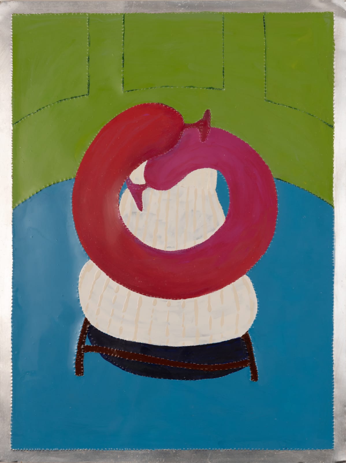 Furthermore, Green's use of a painting-by-numbers style adds an additional layer of meaning to his sausages, teetering on the edge of humour and ridicule. This technique enhances the ambiguity of identity and blurs the distinctions between inside and outside. As a result, the sausages become representations of the intricate and multifaceted nature of individuals, challenging conventional ideas of identity and self-definition.