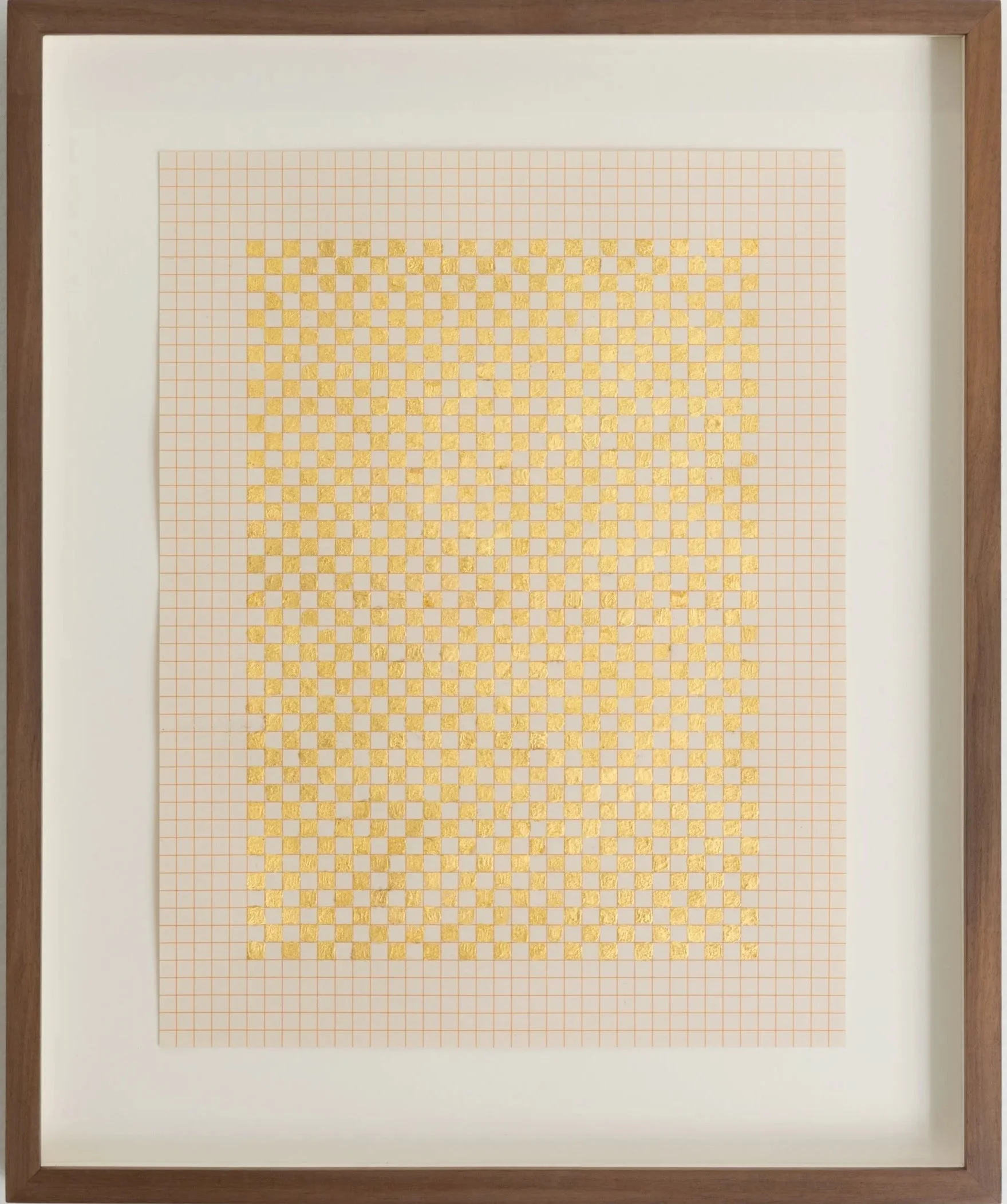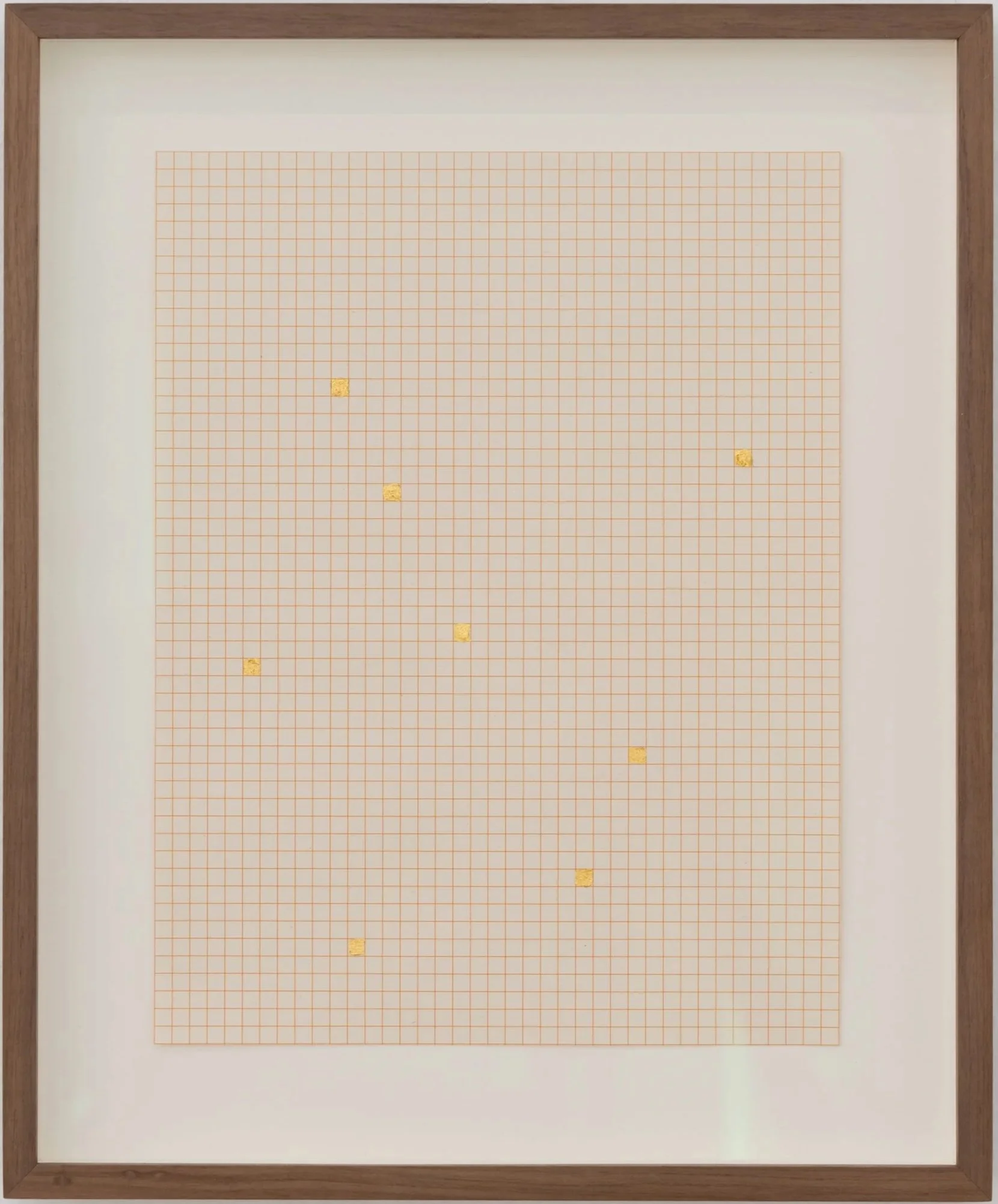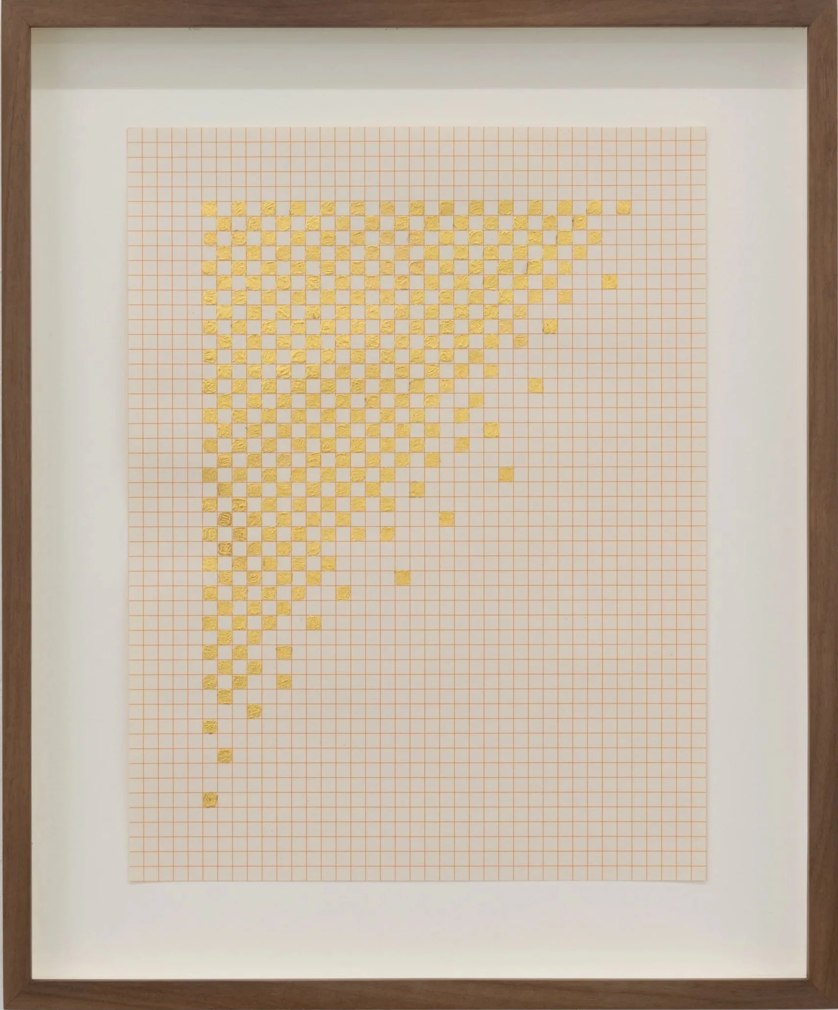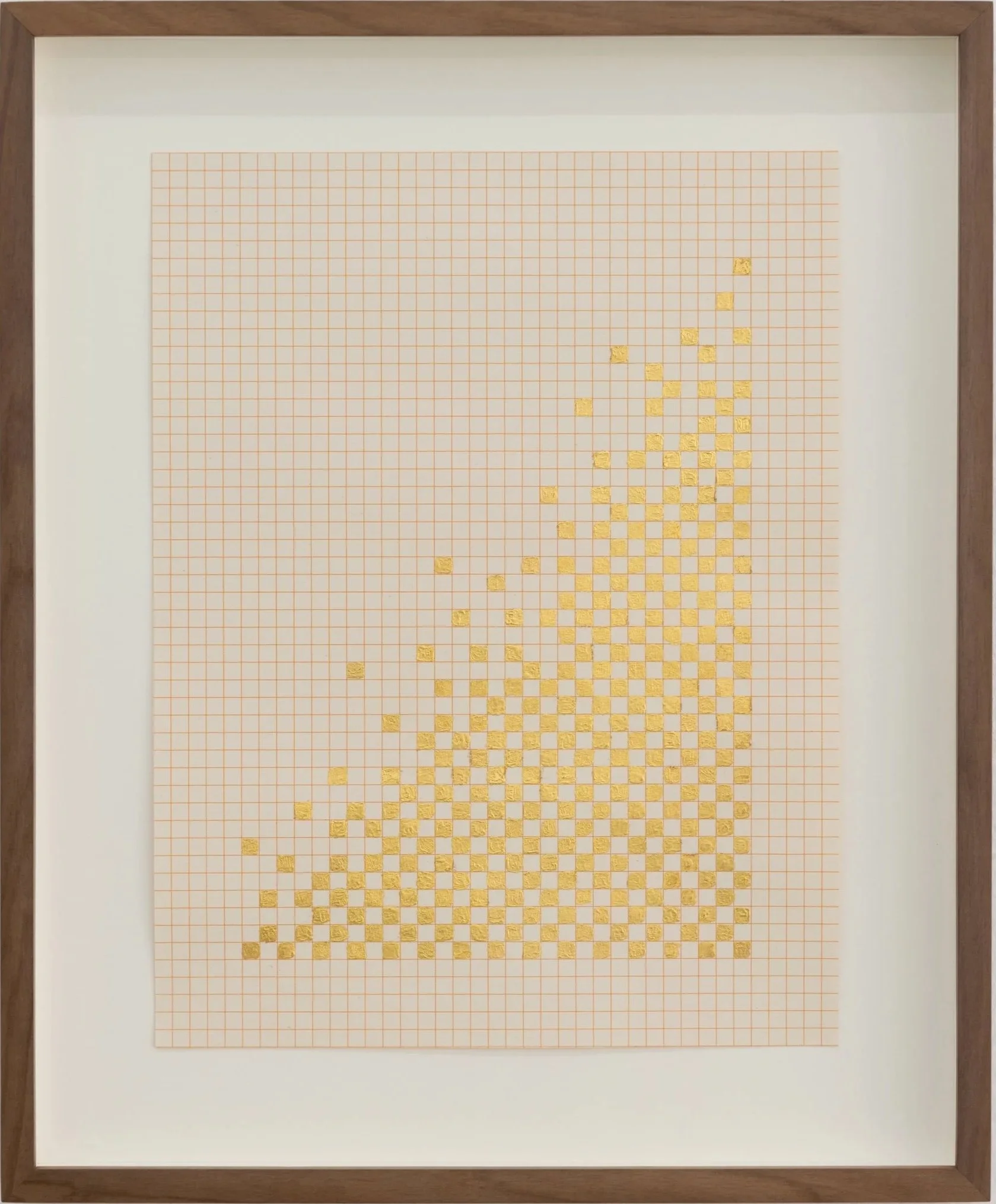 Graph paper and 24 crt gold leaf, Framed with museum glass